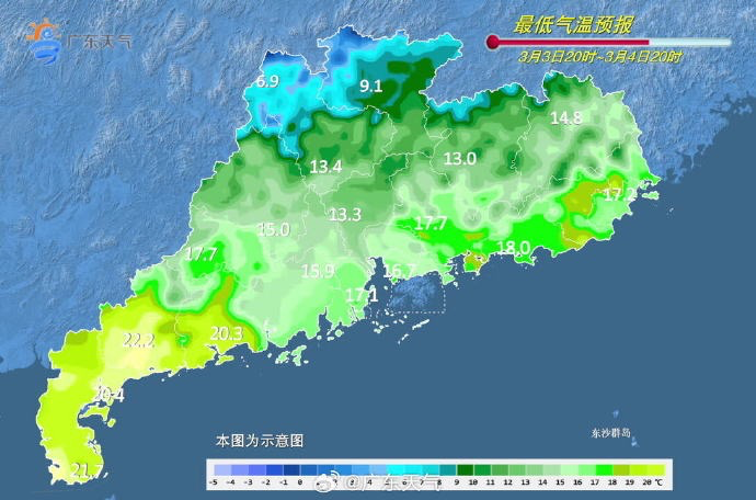 受其影响,中北部市县过程平均气温下降7℃~10℃,南部市县下降5℃~7℃。3日-4日广东省中北部市县有中到大雨局部暴雨,局地伴有雷电、小冰雹和6~8级短时大风。